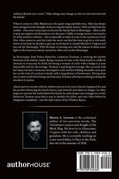 Anthony Brandt once wrote, "Other things may change us, but we start and end with the family." When it comes to Allen Blackwood, this quote rings painfully true. Allen has always been intrigued at the thought of discovering his family history. With no help from his mother - who never seems open to discuss her family back in Mississippi - Allen is able to pick up snippets of information over the years. Oddly, a strange secrecy surrounds a lot of his southern relatives - this is especially so when it come to the mysterious Uncle Otis. Allen yearns to seek the truth, but never can find the time to go for a visit until, down on his luck, he decides to give up on his hand-to-mouth lifestyle in Virginia and sets out for Mississippi. With the hope of starting new and the chance to shine some light on the timeworn family mysteries; Allen sets out for Mississippi. In Mississippi, State Police Detective, Lashauna Trudeau, is working the double homicide of an elderly couple. Being a woman of color in the Deep South is a difficult obstacle to overcome by itself, but being a woman of color with a badge is a near impossible task for the average. Trudeau is anything but average. She succeeds with her sharp wit and a tenacious investigative style and her bulldog mentality soon puts her on the trail of a reclusive family with a long history of lawlessness. Diving deep into a nasty world full of drugs and bad men, Trudeau will stop at nothing to bring the murderer to justice. Allen's quest to reunite with his relatives proves to be more than he bargained for and his pursuit of learning the family history puts himself, and others in danger. As Allen begins to uncover the truth behind his family, he sinks deeper into a dangerous world. Detective Trudeau must find a way to identify the killer, and save Allen before he disappears completely - into the dark waters of the Whiskey Bayou.