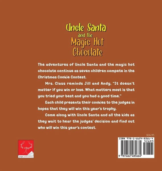 The adventures of Uncle Santa and the magic hot chocolate continue as seven children compete in the Christmas Cookie Contest. Mrs. Claus reminds Jill and Andy, "It doesn't matter if you win or lose. What matters most is that you tried your best and you had a good time." Each child presents their cookies to the judges in hopes that they will win this year's trophy. Come along with Uncle Santa and all the kids as they wait to hear the judges' decision and find out who will win this year's contest.