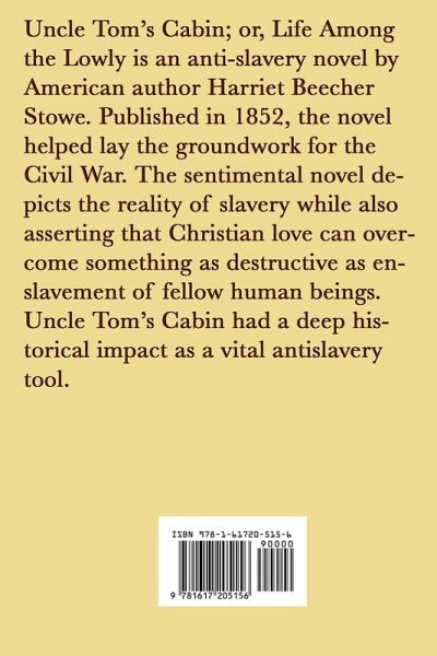 Uncle Tom's Cabin; or, Life Among the Lowly is an anti-slavery novel by American author Harriet Beecher Stowe. Published in 1852, the novel helped lay the groundwork for the Civil War. The sentimental novel depicts the reality of slavery while also asserting that Christian love can overcome something as destructive as enslavement of fellow human beings. Uncle Tom's Cabin had a deep historical impact as a vital antislavery tool.