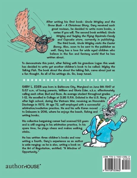 Gary L. Eder was born in Baltimore City, Maryland on June 8th 1947 at 5:57 a.m. of loving parents, William and Gloria Eder, a.k.a. affectionately calling each other, Bud and Suze. An average student throughout grades 1-12. He excelled in College at 3.85 G.P.A. Enlisted in the U.S. Navy after high school, during the Vietnam War, receiving an Honorable Discharge in 1972. At age 72, self-employed with a successful arbitration/mediation practice. He and his wife Karen moved to Delaware in 2016, where he enjoys the beach, fishing and writing books. His collective bargaining career had scanned 53 years and is still ongoing in his arbitration practice. In his spare time, he plays chess and makes walking sticks. He has written three children's books and now writing a fourth. Gary's experience as an author is wide ranging; as he is also, writing a book on the Art of Negotiation, entitled; "A Window of Opportunity."