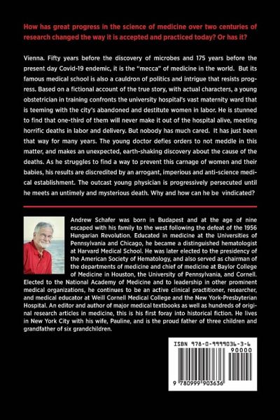 How has great progress in the science of medicine over two centuries of research changed the way it is accepted and practiced today? Or has it? Vienna. Fifty years before the discovery of microbes and 175 years before the present day Covid-19 endemic, it is the "mecca" of medicine in the world. But its famous medical school is also a cauldron of politics and intrigue that resists progress. Based on a fictional account of the true story, with actual characters, a young obstetrician in training confronts the university hospital's vast maternity ward that is teeming with the city's abandoned and destitute women in labor. He is stunned to find that one-third of them will never make it out of the hospital alive, meeting horrific deaths in labor and delivery. But nobody has much cared. It has just been that way for many years. The young doctor defies orders to not meddle in this matter, and makes an unexpected, earth-shaking discovery about the cause of the deaths. As he struggles to find a way to prevent this carnage of women and their babies, his results are discredited by an arrogant, imperious and anti-science medical establishment. The outcast young physician is progressively persecuted until he meets an untimely and mysterious death. Why and how can he be vindicated?