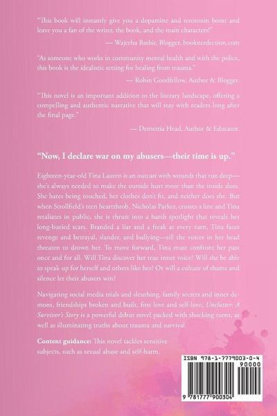"Now, I declare war on my abusers-their time is up." Eighteen-year-old Tina Lauren is an outcast with wounds that run deep-she's always needed to make the outside hurt more than the inside does. She hates being touched, her clothes don't fit, and neither does she. But when Strollfield's teen heartthrob, Nicholas Parker, crosses a line and Tina retaliates in public, she is thrust into a harsh spotlight that reveals her long-buried scars. Branded a liar and a freak at every turn, Tina faces revenge and betrayal, slander, and bullying-till the voices in her head threaten to drown her. To move forward, Tina must confront her past once and for all. Will Tina discover her true inner voice? Will she be able to speak up for herself and others like her? Or will a culture of shame and silence let their abusers win? Navigating social media trials and sleuthing, family secrets and inner demons, friendships broken and built, first love and self-love, Unclutter: A Survivor's Story is a powerful debut novel packed with shocking turns, as well as illuminating truths about trauma and survival. Content guidance: This novel tackles sensitive subjects, such as sexual abuse and self-harm.