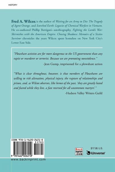 "Plowshare activists are for more dangerous to the US government than any rapist or murderer or terrorist. Because we are promoting nonviolence." -Jean Gump, imprisoned for a plowshare action "What is clear throughout, however, is that members of Plowshares are willing to risk alienation, physical injury, the rupture of relationships and prison, and, as Wilcox observes, like heroes of the past, 'they are greatly hated and feared while they live, a fate reserved for all uncommon martyrs'." -Hudson Valley Writers Guild