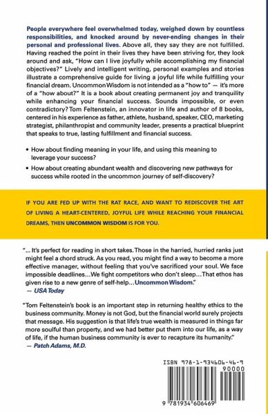 The legendary marketing guru and humanist who helped shape McDonald's revolutionary marketing strategies, shares his secrets in business and life. The nation's largest companies and foremost business leaders have paid millions for his knowledge. Now, through UNCOMMON WISDOM, these timeless teachings for living a full, joyful life with financial prosperity become available to you. "Why in the world would you want to read another 'how to be rich and happy' book?" You'll find ways to enhance your life, deepen your personal relationships, become more effective in business and create peace and balance regardless of the external environment! Tom has completely revised and expanded the book with over 150 new pages filled with wit, passion, humor and wisdom so that we can all take a load off for the rest of our lives. You'll laugh, you'll cry, and through it all - you'll find ways to transform your life.