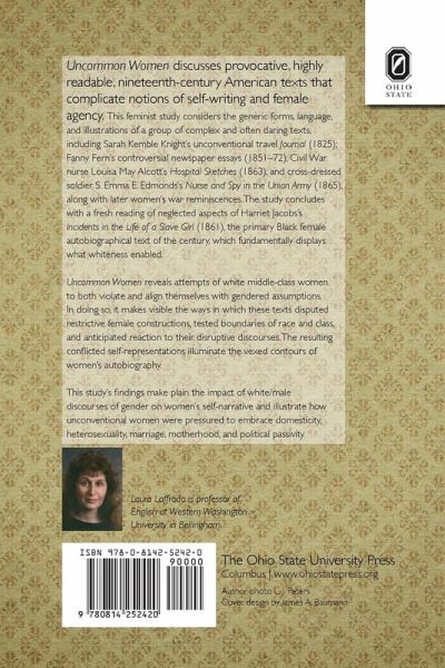 Uncommon Women discusses provocative, highly readable, nineteenth-century American texts that complicate notions of self-writing and female agency. This feminist study considers the generic forms, language, and illustrations of a group of complex and often daring texts, including Sarah Kemble Knight's unconventional travel Journal (1825); Fanny Fern's controversial newspaper essays (1851-72); Civil War nurse Louisa May Alcott's Hospital Sketches (1863); and cross-dressed soldier's S. Emma E. Edmonds's Nurseand Spy in the Union Army (1865), along with later women's war reminiscences. The study concludes with a fresh reading of neglected aspects of Harriet Jacobs's Incidents in the Life of a Slave Girl (1861), the primary Black female autobiographical text of the century, which fundamentally displays what whiteness enabled. Uncommon Women reveals attempts of white middle-class women to both violate and align themselves with gendered assumptions. In doing so, it makes visible the ways in which these texts disputed restrictive female constructions, tested boundaries of race and class, and anticipated reaction to their disruptive discourses. The resulting conflicted self-representations illuminate the vexed contours of women's autobiography. This study's findings make plain the impact of white/male discourses of gender on women's self-narrativeand illustrate how unconventional women were pressured to embrace domesticity, heterosexuality, marriage, motherhood, and political passivity.