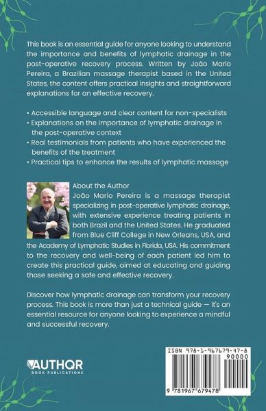 Discover the power of Manual Lymphatic Drainage (MLD) - a gentle yet highly effective technique used worldwide for recovery, wellness, and aesthetics. In Uncomplicating The Lymphatic Drainage, Joao Mario Pereira, a specialized therapist, presents a comprehensive guide that unveils the science behind the lymphatic system and shows how MLD can accelerate post-surgical recovery, strengthen the immune system, reduce swelling, improve circulation, and promote emotional balance. This book covers the history of MLD, its clinical applications, step-by-step techniques, contraindications. Whether you are a healthcare professional or someone seeking natural ways to enhance appearance and well-being, this is an essential and transformative guide. Recommended for: physiotherapists, massage therapists, estheticians, post-operative care specialists, and anyone who values natural and effective health and wellness solutions.