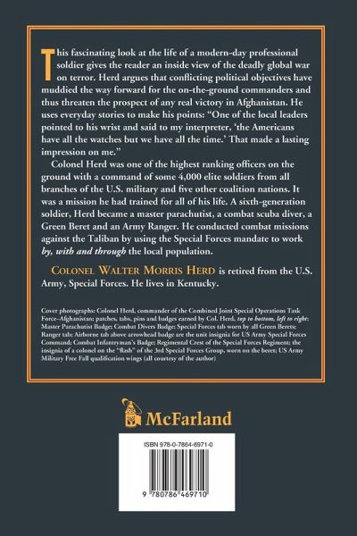 This fascinating look at the life of a modern-day professional soldier gives the reader an inside view of the deadly global war on terror. Herd argues that conflicting political objectives have muddied the way forward for the on-the-ground commanders and thus threaten the prospect of any real victory in Afghanistan. He uses everyday stories to make his points: "One of the local leaders pointed to his wrist and said to my interpreter, 'the Americans have all the watches but we have all the time.' That made a lasting impression on me." Colonel Herd was one of the highest ranking officers on the ground with a command of some 4,000 elite soldiers from all branches of the U.S. military and five other coalition nations. It was a mission he had trained for all of his life. A sixth-generation soldier, Herd became a master parachutist, a combat scuba diver, a Green Beret and an Army Ranger. He conducted combat missions against the Taliban by using the Special Forces mandate to work by, with and through the local population.