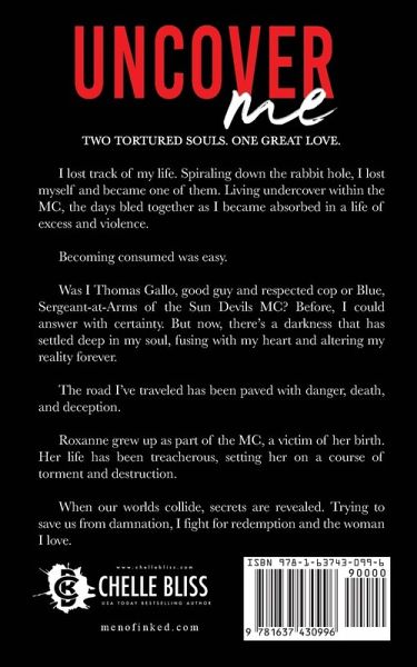 Two tortured souls. One great love. I lost track of my life. Spiraling down the rabbit hole, I lost myself and became one of them. Living undercover within the MC, the days bled together as I became absorbed in a life of excess and violence. Becoming consumed was easy. Was I Thomas Gallo, good guy and respected cop or Blue, Sergeant-at-Arms of the Sun Devils MC? Before, I could answer with certainty. But now, there's a darkness that has settled deep in my soul, fusing with my heart and altering my reality forever. The road I've traveled has been paved with danger, death, and deception. Roxanne grew up as part of the MC, a victim of her birth. Her life has been treacherous, setting her on a course of torment and destruction. When our worlds collide, secrets are revealed. Trying to save us from damnation, I fight for redemption and the woman I love.
