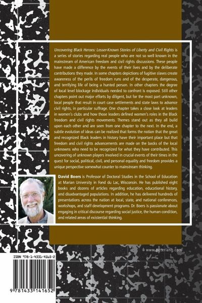 Uncovering Black Heroes: Lesser-Known Stories of Liberty and Civil Rights is a series of stories regarding real people who are not so well known in the mainstream of American freedom and civil rights discussions. These people have made a difference by the events of their lives and by the deliberate contributions they made. In some chapters depictions of fugitive slaves create awareness of the perils of freedom runs and of the desperate, dangerous, and terrifying life of being a hunted person. In other chapters the degree of local level blockage individuals needed to confront is exposed. Still other chapters point out major efforts by diligent, but for the most part unknown, local people that result in court case settlements and state laws to advance civil rights, in particular suffrage. One chapter takes a close look at leaders in women's clubs and how those leaders defined women's roles in the Black freedom and civil rights movements. Themes stand out as they all build upon each other and are seen from one chapter to the next. In the end, a subtle evolution of ideas can be realized that forms the notion that the great and recognized Black leaders in history have their important place but that freedom and civil rights advancements are made on the backs of the local unknowns who need to be recognized for what they have contributed. This uncovering of unknown players involved in crucial events of their times in the quest for social, political, civil, and personal equality and freedom provides a unique perspective somewhat counter to mainstream thinking.