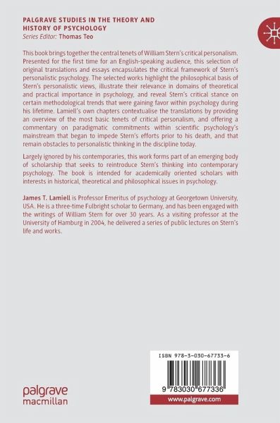 This book brings together the central tenets of William Stern's critical personalism. Presented for the first time for an English-speaking audience, this selection of original translations and essays encapsulates the critical framework of Stern's personalistic psychology. The selected works highlight the philosophical basis of Stern's personalistic views, illustrate their relevance in domains of theoretical and practical importance in psychology, and reveal Stern's critical stance on certain methodological trends that were gaining favor within psychology during his lifetime. Lamiell's own chapters contextualise the translations by providing an overview of the most basic tenets of critical personalism, and offering a commentary on paradigmatic commitments within scientific psychology's mainstream that began to impede Stern's efforts prior to his death, and that remain obstacles to personalistic thinking in the discipline today.