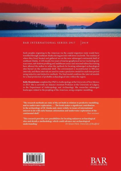 Early peoples migrating to the Americas via the coastal migration route would have travelled through southeast Alaska during periods with lower sea levels. The residues of where they lived, hunted and gathered are on the now submerged continental shelf of southeast Alaska. A GIS model, two years of marine geophysical survey (including side scan sonar, sub-bottom profiling and multibeam sonar) and minimal subsurface testing have allowed the author to refine the methods for locating submerged archaeological sites buried on the continental shelf. The environment is reconstructed in 500-year intervals, and these intervals are used to create a predictive model for each time period using inductive and deductive methods. The final model combines the interval models for a final prediction of probable archaeological sites within the region.