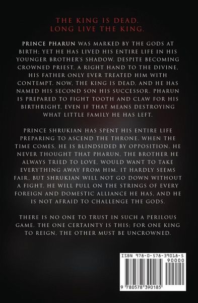 The king is dead. Long live the king. Prince Pharun was marked by the gods at birth, yet he has lived his entire life in his younger brother's shadow. Despite becoming Crowned Priest, a right hand to the divine, his father only ever treated him with contempt. Now, the king is dead, and he has named his second son his successor. Pharun is prepared to fight tooth and claw for his birthright, even if that means destroying what little family he has left. Prince Shrukian has spent his entire life preparing to ascend the throne. When the time comes, he is blindsided by opposition. He never thought that Pharun, the brother he always tried to love, would want to take everything away from him. It hardly seems fair, but Shrukian will not go down without a fight. He will pull on the strings of every foreign and domestic alliance he has, and he is not afraid to challenge the gods. There is no one to trust in such a perilous game. The one certainty is this; for one king to reign, the other must be uncrowned.