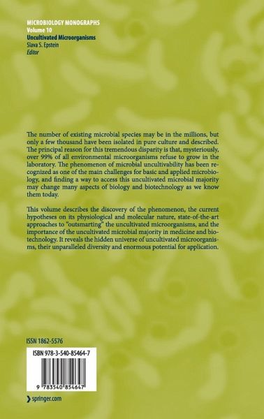 This volume describes the discovery of the phenomenon, the current hypotheses on its physiological and molecular nature, state-of-the-art approaches to "outsmarting" the uncultivated microorganisms, and the importance of the uncultivated microbial majority in medicine and biotechnology. It reveals the hidden universe of uncultivated microorganisms, their unparalleled diversity and enormous potential for application.