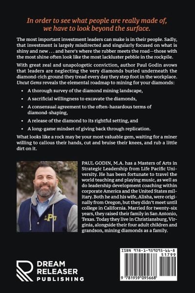 In order to see what people are really made of,we have to look beyond the surface. The most important investment leaders can make is in their people. Sadly, that investment is largely misdirected and singularly focused on what is shiny and new . . . and here's where the rubber meets the road-those with the most shine often look like the most lackluster pebble in the rockpile.With great zeal and unapologetic conviction, author Paul Godin avows that leaders are neglecting the very diamonds buried underneath the diamond-rich ground they tread every day they step foot in the workplace. Uncut Gems reveals the elemental roadmap to mining for your diamonds:A thorough survey of the diamond mining landscape, A sacrificial willingness to excavate the diamonds, A consensual agreement to the often-hazardous terms of diamond-shaping, A release of the diamond to its rightful setting, and A long-game mindset of giving back through replication. What looks like a rock may be your most valuable gem, waiting for a miner willing to callous their hands, cut and bruise their knees, and rub a little dirt on it.