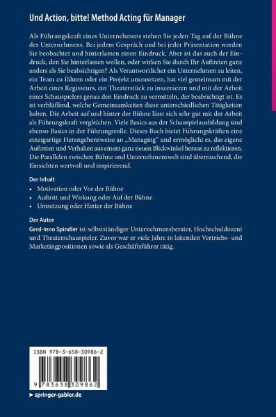 Als Verantwortlicher ein Unternehmen zu leiten, ein Team zu führen oder ein Projekt umzusetzen, hat viel gemeinsam mit der Arbeit eines Regisseurs ein Theaterstück oder einen Film zu inszenieren und auf die Bühne oder ins Kino zu bringen. Es ist verblüffend, welche Parallelen es zwischen diesen so unterschiedlichen Tätigkeiten gibt. Oft erkennt man die Art und Weise bestimmter Aktionen dann viel leichter, wenn eine Analogie zu einem völlig anderen Bereich des Lebens hergestellt wird. Die Arbeit auf und hinter der Bühne lässt sich sehr gut mit der Arbeit als Führungskraft im Unternehmen vergleichen. Lee Strassberg, einer der bekanntesten Regisseure und Schauspiellehrer, verlangt durch sein Method Acting eine extrem hohe Identifikation der Schauspieler mit der Rolle, die sie darstellen sollen. Viele Basics aus der Schauspielausbildung sind ebenso Basics in der Führungsrolle. Dieses Buch bietet Führungskräften eine einzigartige Herangehensweise an "Managing" und ermöglicht es, das eigeneAuftreten und Verhalten aus einem ganz neuen Blickwinkel heraus zu reflektieren.