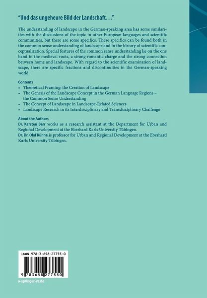 Contents-Theoretical Framing: the Creation of Landscape-The Genesis of the Landscape Concept in the German Language Regions - the Common Sense Understanding-The Concept of Landscape in Landscape-Related Sciences-Landscape Research in its Interdisciplinary and Transdisciplinary Challenge