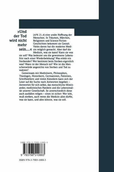 "Und der Tod wird nicht mehr sein..." (APK 21,4) eine uralte Hoffnung der Menschen. In Träumen, Märchen, Religionen und Science-Fiction-Geschichten bekommt sie Gestalt. Vieles davon hat die moderne Medizin möglich gemacht. Aber darf die Medizin, was sie kann? Kann sie was sie soll? Was bedeutet uns die gewonnene Lebensfrist nach einer Wiederbelebung? Was erlebt ein Sterbender? Wer bestimmt beim Sterben eigentlich was? Wann ist der Mensch tot? Wie ist die Menschwürde angesichts von Sterben und Tod zu wahren? Gemeinsam mit Medizinern, Philosophen, Theologen, Historikern, Germanisten, Patienten, Schriftstellern und vielen Künstlern kann sich der Leser auf die Suche nach Antworten begeben - Antworten für sich selbst, das menschliche Miteinander, medizinisches Handeln und die Lebensrealität unserer Gesellschaft. So unterschiedlich diese auch ausfallen mögen - eines ist sicher: Wer lebt, muß sterben, auch wenn die Medizin alles dürfte, wa sie kann, und alles könnte, was sie soll.