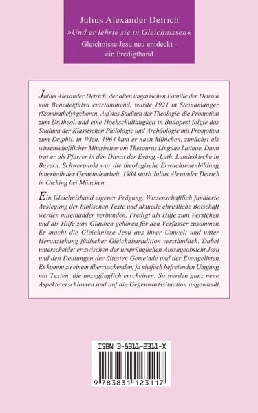 Ein Gleichnisband eigener Prägung. Wissenschaftlich fundierte Auslegung der biblischen Texte und aktuelle christliche Botschaft werden miteinander verbunden. Predigt als Hilfe zum Verstehen und als Hilfe zum Glauben gehören für den Verfasser zusammen. Er macht die Gleichnisse Jesu aus ihrer Umwelt und unter Heranziehung jüdischer Gleichnistradition verständlich. Dabei unterscheidet er zwischen der ursprünglichen Aussageabsicht Jesu und den Deutungen der ältesten Gemeinde und der Evangelisten. Es kommt zu einem überraschenden, ja vielfach befreienden Umgang mit Texten, die unzugänglich erscheinen.