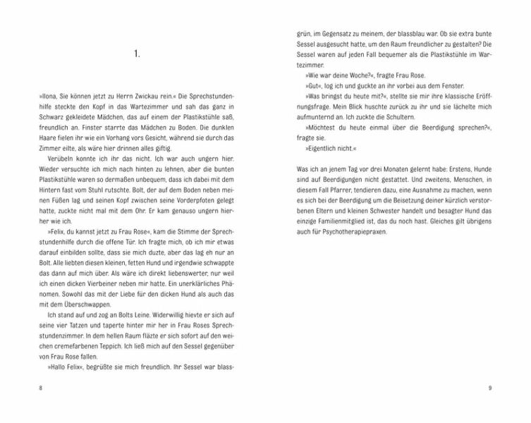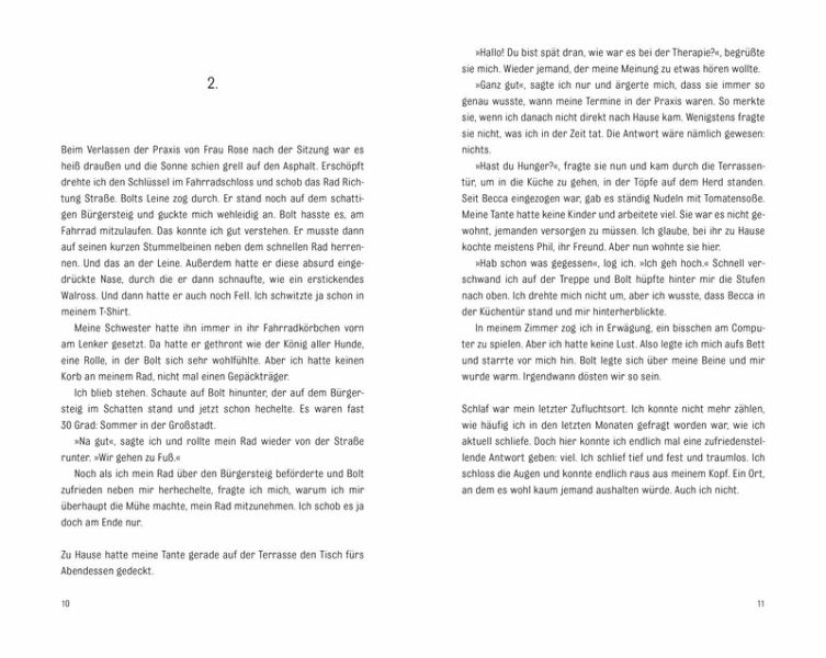 Der 16-jährige Felix hat alles verloren: seine Eltern, seine kleine Schwester, seine Unbeschwertheit. Einzig Bolt, der dicke, eigenwillige Hund seiner Familie, ist ihm geblieben - und die Trauer, die ihn zu ersticken droht. Doch als Bolt immer apathischer wird, muss Felix handeln und beginnt eine Therapie. Im Wartezimmer trifft er Mo, einen gleichaltrigen Jungen mit dunklem Humor und einer rätselhaften Vergangenheit. Aus Fremden werden Freunde, und zusammen mit der lebensfrohen Marie begeben sie sich auf einen holprigen Weg zurück ins Leben. In ihrer wackeligen Dreierkonstellation stellen sie sich ihren Ängsten - auch in waghalsigen Challenges ...