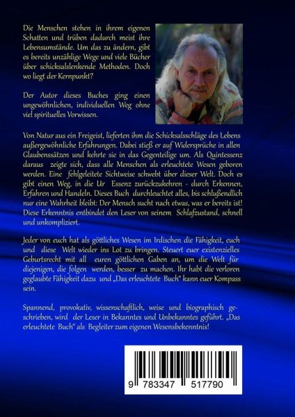 Die Menschen stehen in ihrem eigenen Schatten und trüben dadurch meist ihre Lebensumstände. Um das zu ändern, gibt es bereits unzählige Wege und viele Bücher über schicksalslenkende Methoden. Doch wo liegt der Kernpunkt? Der Autor dieses Buches ging einen ungewöhnlichen, individuellen Weg ohne viel spirituelles Vorwissen. Von Natur aus ein Freigeist, lieferten ihm die Schicksalsschläge des Lebens außergewöhnliche Erfahrungen. Dabei stieß er auf Widersprüche in allen Glaubenssätzen und kehrte sie in das Gegenteilige um. Als Quintessenz daraus zeigte sich, dass alle Menschen als erleuchtete Wesen geboren werden. Eine fehlgeleitete Sichtweise schwebt über dieser Welt. Doch es gibt einen Weg, in die Ur-Essenz zurückzukehren - durch Erkennen, Erfahren und Handeln. Dieses Buch durchleuchtet alles, bis schlussendlich nur eine Wahrheit bleibt: Der Mensch sucht nach etwas, was er bereits ist! Diese Erkenntnis entbindet den Leser von seinem Schlafzustand, schnell und unkompliziert. Jeder von euch hat als göttliches Wesen im Irdischen die Fähigkeit, euch und diese Welt wieder ins Lot zu bringen. Steuert euer existenzielles Geburtsrecht mit all euren göttlichen Gaben an, um die Welt für diejenigen, die folgen werden, besser zu machen. Ihr habt die verloren geglaubte Fähigkeit dazu und "Das erleuchtete Buch" kann euer Kompass sein.Spannend, provokativ, wissenschaftlich, weise und biographisch geschrieben, wird der Leser in Bekanntes und Unbekanntes geführt. "Das erleuchtete Buch" als Begleiter zum eigenen Wesensbekenntnis!