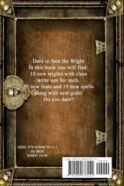Enter the realm of the night as you take on the wight. The evil of the wight reawakens in this supplement with quick rules on how to play wights if your game master is so daring with a quick wight template and a new race: the dreaded Half-Wight. A half undead creature that people tend to stay away from. Inside are 10 new wights from the Dire Wight, the Energy Wight and the horrid Harbinger Wight. But that's not all, included with each is a basic character class so that you can play each individual wight with unique rules for each. You'll also find 25 feats, 19 new spells and 3 new wight gods each with their own planar descriptions for places to take your players to explore. Face the might of the wight and see if you come out ... alive or otherwise.