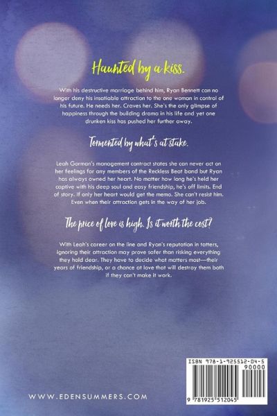 Haunted by a kiss. With his destructive marriage behind him, Ryan Bennett can no longer deny his insatiable attraction to the one woman in control of his future. He needs her. Craves her. She's the only glimpse of happiness through the building drama in his life and yet one drunken kiss has pushed her further away. Tormented by what's at stake. Leah Gorman's management contract states she can never act on her feelings for any members of the Reckless Beat band but Ryan has always owned her heart. No matter how long he's held her captive with his deep soul and easy friendship, he's off limits. End of story. If only her heart would get the memo. She can't resist him. Even when their attraction gets in the way of her job. The price of love is high. Is it worth the cost? With Leah's career on the line and Ryan's reputation in tatters, ignoring their attraction may prove safer than risking everything they hold dear. They have to decide what matters most-their years of friendship, or a chance at love that will destroy them both if they can't make it work.