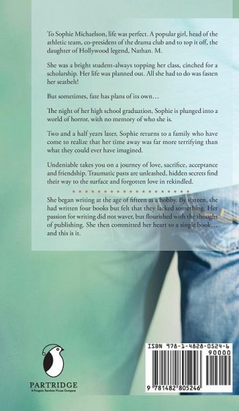 To Sophie Michaelson, life was perfect. A popular girl, head of the athletic team, co-president of the drama club and to top it off, the daughter of Hollywood legend, Nathan. M. She was a bright student-always topping her class, cinched for a scholarship. Her life was planned out. All she had to do was fasten her seatbelt! But sometimes, fate has plans of its own... The night of her high school graduation, Sophie is plunged into a world of horror, with no memory of who she is. Two and a half years later, Sophie returns to a family who have come to realize that her time away was far more terrifying than what they could ever have imagined. Undeniable takes you on a journey of love, sacrifice, acceptance and friendship. Traumatic pasts are unleashed, hidden secrets find their way to the surface and forgotten love in rekindled.