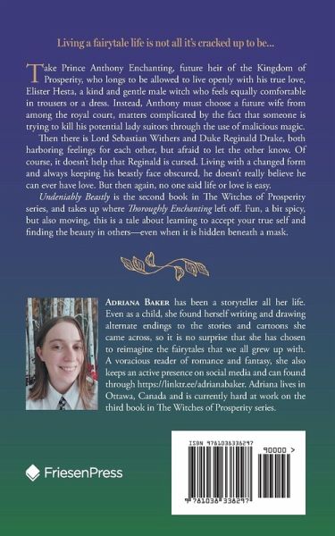 Living a fairytale life is not all it's cracked up to be... Take Prince Anthony Enchanting, future heir of the Kingdom of Prosperity, who longs to be allowed to live openly with his true love, Elister Hesta, a kind and gentle male witch who feels equally comfortable in trousers or a dress. Instead, Anthony must choose a future wife from among the royal court, matters complicated by the fact that someone is trying to kill his potential lady suitors through the use of malicious magic. Then there is Lord Sebastian Withers and Duke Reginald Drake, both harboring feelings for each other, but afraid to let the other know. Of course, it doesn't help that Reginald is cursed. Living with a changed form and always keeping his beastly face obscured, he doesn't really believe he can ever have love. But then again, no one said life or love is easy. Undeniably Beastly is the second book in The Witches of Prosperity series, and takes up where Thoroughly Enchanting left off. Fun, a bit spicy, but also moving, this is a tale about learning to accept your true self and finding the beauty in others-even when it is hidden beneath a mask.