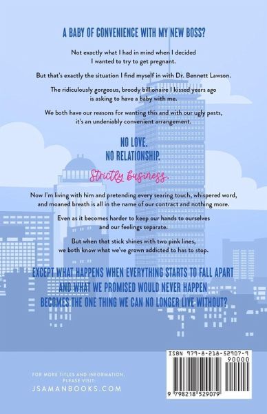 Have a baby with my new boss? Not exactly what I had in mind when I decided I wanted to try to get pregnant. But that's exactly the situation I find myself in with Dr. Bennett Lawson. The ridiculously gorgeous, broody billionaire I kissed years ago is asking to have a baby with me. We both have our reasons for wanting this and with our ugly pasts, it's an undeniably convenient arrangement. No love. No relationship. Strictly business. Now I'm living with him and pretending every searing touch, whispered word, and moaned breath is all in the name of our contract and nothing more. Even as it becomes harder to keep our hands to ourselves and our feelings separate. But when that stick shines with two pink lines, we both know what we've grown addicted to has to stop. Except what happens when everything starts to fall apart and what we promised would never happen becomes the one thing we can no longer live without?