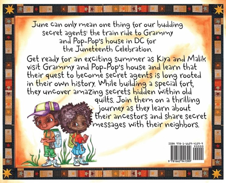 "Undercover: Kiya and Malik's Juneteenth Adventure" is an engaging children's book that follows the imaginative journey of two young siblings, Kiya and Malik, aged 5, as they discover the remarkable history behind quilts and their significance in African American culture. Set in the vibrant city of Washington, DC, this heartfelt tale combines playfulness, family bonding, and historical exploration. When Kiya and Malik visit their grandparents' house, they quickly set upon making a blanket fort out of old quilts found around the house that will serve as their secret agent headquarters. They are soon sending out secret messages from their headquarters as they embark on their journey into the world of secret agents. They will soon learn that they actually come from a long line of secret agents. Kiya and Malik soon learn that they come from a long line of 'secret agents.' Guided by their wise and loving grandparents, Grammy and Pop-Pop, Kiya and Malik learn about the incredible role quilts played in African American history. Through vivid conversations, Grammy shares captivating tales of how their great-great grandmother Fannie made quilts and that these quilts were used by enslaved people to communicate important messages and guide fellow freedom seekers to the Underground Railroad, a secret network leading to freedom. Inspired by these stories, Kiya and Malik's curiosity turns into a creative spark. Together these two secret agents decide to make a special Juneteenth-themed quilt patterns, symbolizing their celebration of freedom and African American heritage. They use these patterns to spread their own message of the Juneteenth celebration happening in town. Seeing the incredible work their ancestors have inspired, Grammy and Pop-Pop could not be prouder of their grandchildren for carrying on this time-honored tradition. The children have learned an important lesson of not only their own history but the power of unity, resilience, and the importance of honoring their ancestors' struggles. Throughout the book, vivid illustrations bring the characters and their surroundings to life, capturing the warmth and joy of family connections, while also showcasing the historical context. "Undercover: Kiya and Malik's Juneteenth Adventure" delivers a powerful message of cultural heritage, promoting empathy, understanding, and appreciation for diversity. It encourages young readers aged 5-11 to celebrate the past, embrace their identity, and cherish the traditions that unite us all. Join Kiya and Malik on their thrilling and educational journey as they discover the rich tapestry of African American history and the joy of connecting with their roots through the art of quilting.