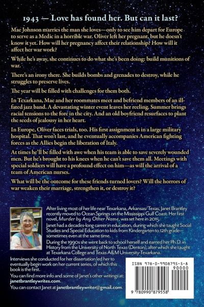 1943 -- Love has found her. But can it last? Mae Johnson marries the man she loves-only to see him depart for Europe to serve as a Medic in a horrible war. Oliver left her pregnant, but he doesn't know it yet. How will her pregnancy affect their relationship? How will it affect her war work? While he's away, she continues to do what she's been doing: build munitions of war. There's an irony there. She builds bombs and grenades to destroy, while he struggles to preserve lives. The year will be filled with challenges for them both. In Texarkana, Mae and her roommates meet and befriend members of an ill-fated jazz band. A devastating winter event leaves her reeling. Summer brings racial tensions to the fore in the city. And an old boyfriend resurfaces to plant the seeds of jealousy in her heart. In Europe, Oliver faces trials, too. first assignment is in a large military hospital. That won't last, and he eventually accompanies American fighting forces as the Allies begin the liberation of Italy. At times he'll be filled with awe when his team is able to save severely wounded men. But he's brought to his knees when he can't save them all. Meetings with special soldiers will have a profound effect on him- As will the arrival of a team of American nurses. What will be the outcome for these friends turned lovers? Will the horrors of war weaken their marriage, strengthen it, or destroy it?