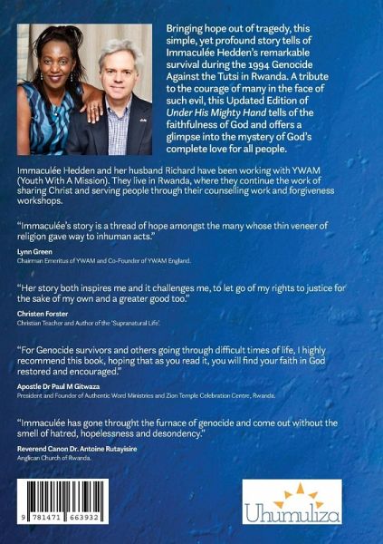 One woman trusted God in the immense danger of the 1994 Genocide Against the Tutsi in Rwanda. Faith, circumstance and ultimately the Lord delivered Immaculee Hedden from the peril that was trying to take her life. Under His Mighty Hand is a tribute to the courage of many during the dark days of the Genocide Against the Tutsi and the many loved ones who were lost.