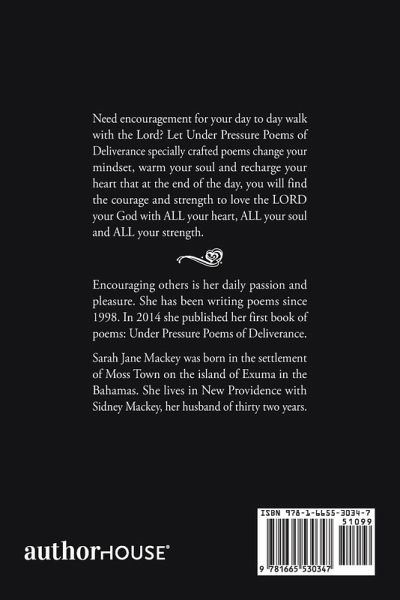 Need encouragement for your day to day walk with the Lord? Let Under Pressure Poems of Deliverance specially crafted poems change your mindset, warm your soul and recharge your heart that at the end of the day, you will find the courage and strength to love the LORD your God with ALL your heart, ALL your soul and ALL your strength.