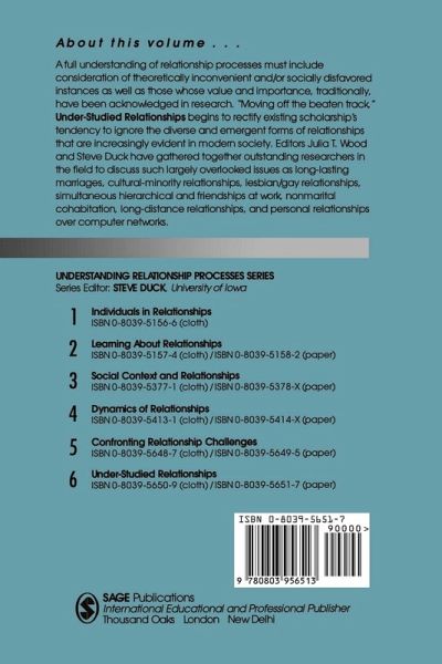 The diverse and emergent forms of relationships, increasingly evident in today's society, are the focus of this volume. Outstanding researchers discuss relationships that are often overlooked in the literature, including: lesbian and gay; cultural minority; long-lasting marriages; non-marital cohabitation; long-distance; friendships developed through computer networks; and work relationships which are simultaneously hierarchical and friendly.