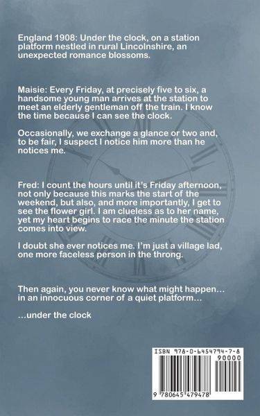 England 1908: Under the clock, on a sleepy station platform nestled in rural Lincolnshire, an unexpected romance blossoms. Maisie: Every Friday, at precisely five to six, a handsome young man arrives at the station. I know the time because I can see the clock. The train pulls in, punctual as always, and among the alighting passengers is an elderly gentleman. The young man greets him with a smile and a handshake, then tucks his arm through the older man's and they leave the platform. Every Friday. Occasionally, we exchange a glance or two and, to be fair, I suspect I notice him more than he notices me. Fred: I count the hours until Friday afternoon comes around. Not only because this marks the start of the weekend but also, and more importantly, I get to see the flower girl. I am clueless as to her name, yet my heart begins to race the minute the station comes into view. I almost run up the steps onto the platform, hoping for a glimpse of her bright smile. Every Friday. I doubt she ever notices me. I'm just a village lad, one more faceless person in the throng. Then again, you never know what might happen... in an innocuous corner of a quiet platform... ...under the clock