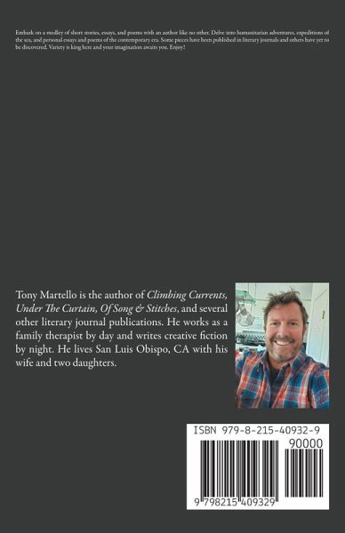 Embark on a medley of short stories, essays, and poems with an author like no other. Delve into humanitarian adventures, expeditions of the sea, and personal essays and poems of the contemporary era. Some pieces have been published in literary journals and others have yet to be discovered. Variety is king here and your imagination awaits you. Enjoy!