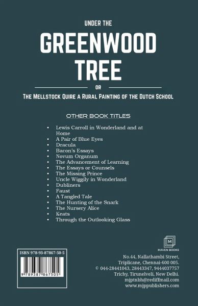 Contents: PART THE FIRST - WINTER: Chapter I - Mellstock-Lane, Chapter II - The Tranter's, Chapter III - The Assembled Quire, Chapter IV - Going the Rounds, Chapter V - The Listeners, Chapter VI - Christmas Morning, Chapter VII - The Tranter's Party, Chapter VIII - They Dance more Wildly, Chapter IX - Dick Calls at the School. PART THE SECOND - SPRING: Chapter I - Passing by the School, Chapter II - A Meeting of the Quire, Chapter III - A Turn in the Discussion, Chapter IV - The Interview with the Vicar, Chapter V - Returning Home Ward, Chapter VI - Yalbury Wood and the Keeper's House, Chapter VII - Dick makes Himself Useful, Chapter VIII - Dick Meets his Father. PART THE THIRD - SUMMER: Chapter I - Driving out of Budmouth, Chapter II - Further along the Road, Chapter III - A Confession, Chapter IV - An Arrangement. PART THE FOURTH - AUTUMN: Chapter I - Going Nutting, Chapter II - Honey-Taking, and Afterwards, Chapter III - Fancy in the Rain, Chapter IV - The Spell, Chapter V - After Gaining Her Point, Chapter VI - Into Temptation, Chapter VII - Second Thoughts. PART THE FIFTH - CONCLUSION: Chapter I - 'The Knot there's No Untying', Chapter II - Under the Greenwood Tree.