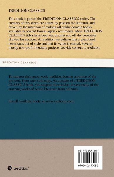This book is part of the TREDITION CLASSICS series. The creators of this series are united by passion for literature and driven by the intention of making all public domain books available in printed format again - worldwide. At tredition we believe that a great book never goes out of style. Several mostly non-profit literature projects provide content to tredition. To support their good work, tredition donates a portion of the proceeds from each sold copy. As a reader of a TREDITION CLASSICS book, you support our mission to save many of the amazing works of world literature from oblivion.