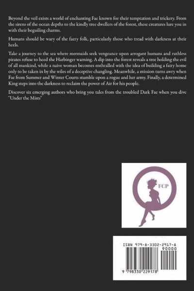 Beyond the veil exists a world of enchanting Fae known for their temptation and trickery. From the sirens of the ocean depths to the kindly tree dwellers of the forest, these creatures lure you in with their beguiling charms. Humans should be wary of the faery folk, particularly those who tread with darkness at their heels. Take a journey to the sea where mermaids seek vengeance upon arrogant humans and ruthless pirates refuse to heed the Harbinger warning. A dip into the forest reveals a tree holding the evil of all mankind, while a naive woman becomes enthralled with the idea of building a fairy home only to be taken in by the wiles of a deceptive changling. Meanwhile, a mission turns awry when Fae from Summer and Winter Courts stumble upon a rogue and her army. Finally, a determined King steps into the darkness to reclaim the power of Air for his people. Discover six emerging authors who bring you tales from the troubled Dark Fae when you dive "Under the Mists"
