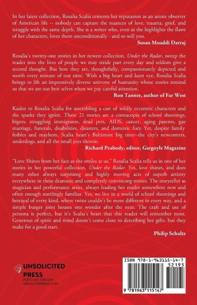 Rosalia Scalia's UNDER THE RADAR, her second short story collection, offers a poignant look at characters grappling with grief and loss in various forms. Each story reveals the raw emotions-anger, numbness, confusion-that accompany their journeys, as they navigate a world seemingly oblivious to their pain. In the title story, set in the 1970s, we follow Hope and Kenny, a young couple whose plans to marry are shattered when Kenny reveals he's gay. "All the Small Joys" explores the clash between two sisters debating whether their mother should be buried with a mink stole or one sister's dog's ashes. In "Static Electricity," adult twins must confront the devastating loss of their mother, an art teacher killed in a school shooting. "Butterfly Moments" focuses on Pearl, who grieves the death of her Marine son, killed by friendly fire, while harboring resentment toward his fiancée, who knew parts of his life Pearl never did. Throughout the collection, Scalia masterfully portrays the characters' struggle to find resilience in the face of overwhelming loss.