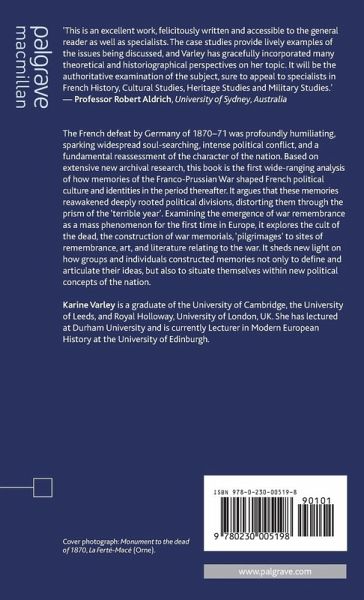 'This is an excellent work, felicitously written and accessible to the general reader as well as specialists. The case studies provide lively examples of the issues being discussed, and Varley has gracefully incorporated many theoretical and historiographical perspectives on her topic. It will be the authoritative examination of the subject, sure to appeal to specialists in French History, Cultural Studies, Heritage Studies and Military Studies.'