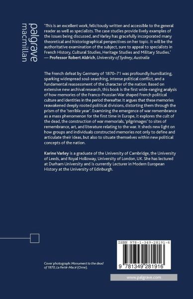 'This is an excellent work, felicitously written and accessible to the general reader as well as specialists. The case studies provide lively examples of the issues being discussed, and Varley has gracefully incorporated many theoretical and historiographical perspectives on her topic. It will be the authoritative examination of the subject, sure to appeal to specialists in French History, Cultural Studies, Heritage Studies and Military Studies.'