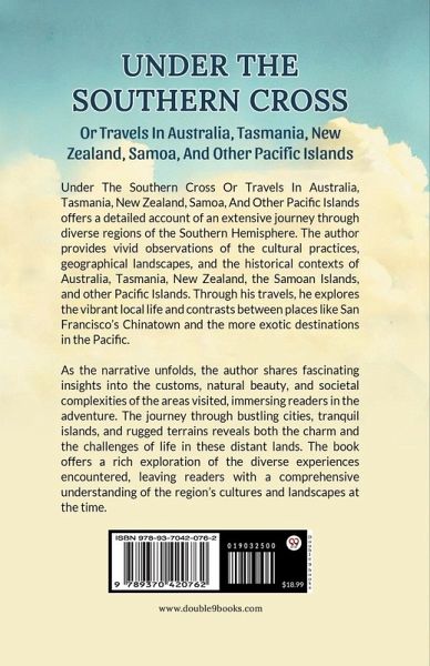 Under The Southern Cross Or Travels In Australia, Tasmania, New Zealand, Samoa, And Other Pacific Islands offers a detailed account of an extensive journey through diverse regions of the Southern Hemisphere. The author provides vivid observations of the cultural practices, geographical landscapes, and the historical contexts of Australia, Tasmania, New Zealand, the Samoan Islands, and other Pacific Islands. Through his travels, he explores the vibrant local life and contrasts between places like San Francisco s Chinatown and the more exotic destinations in the Pacific. As the narrative unfolds, the author shares fascinating insights into the customs, natural beauty, and societal complexities of the areas visited, immersing readers in the adventure. The journey through bustling cities, tranquil islands, and rugged terrains reveals both the charm and the challenges of life in these distant lands. The book offers a rich exploration of the diverse experiences encountered, leaving readers with a comprehensive understanding of the region s cultures and landscapes at the time.