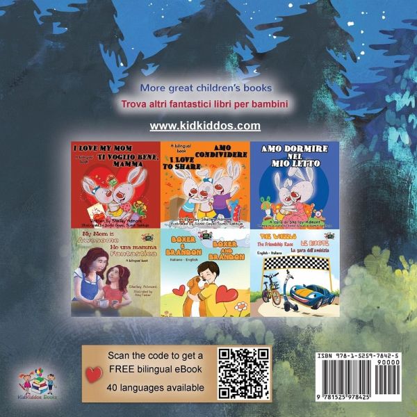 English Italian Bilingual children's book. Perfect for kids learning English or Italian as their second language. It's the summer holidays, and Mark is looking forward to having a big adventure! But when his Mom and Dad announce that the family is going on a camping trip he becomes scared. Will Mark overcome his fear of the dark and be able to enjoy the trip?