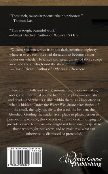 Here are the hills and rivers, mountains and oceans, lakes, rocks, and trees. Real people haunt these places-both alive and dead-and what is visible within them is as important as what is hidden. Under the Water Was Stone takes notice of the small, the ugly, the dirty, the used, the broken, the bloodied. Guiding the reader from place to place, person to person, time to time, this collection emits a certain longing: to provide a voice for those who might not have one, to speak to those who might not know, and to make real what can otherwise be dismissed or pretended.
