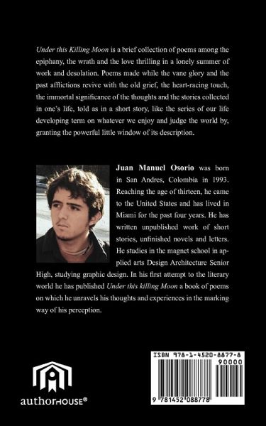 Under this Killing Moon is a brief collection of poems among the epiphany, the wrath and the love thrilling in a lonely summer of work and desolation. Poems made while the vane glory and the past afflictions revive with the old grief, the heart-racing touch, the immortal significance of the thoughts and the stories collected in one's life, told as in a short sequence of words, like the series of our life developing term on whatever we enjoy and judge the world by, granting the powerful little window of its description.