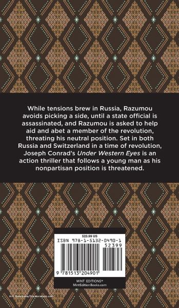 Growing up as an orphan, Razumou adopted the belief that all of Russia was his family, a sentiment that he carries into his higher education. Because of this, when talks of revolution start arising in Russia, Razumou decides to stay neutral. However, this becomes increasingly difficult when most of his classmates start to express their ardent support for a revolution. Still, Razumou decides not to take a stand on either side. Since he feels all of Russia is his family, Razumou equates choosing a side to betrayal. He is privileged enough to hold this neutrality for a while, though, after the assassination of the Minister of the State, Razumou must chose a side. Haldin, one of Razumou's classmates, shows up at Razumou's flat looking disheveled and hoping for asylum after having participated in the assassination of a Russian leader. Reluctantly, Razumou agrees to help Haldin. Feeling guilty and paranoid, Razumou slips into an identity crisis, and is forced to weigh the consequences as he struggles to decide whether to continue providing aid for Haldin, or turn his classmate in to the authorities. Considered to be one of Joseph Conrad's major works, Under Western Eyes explores the injustice in the suffering of lower classes, and the unethical disregard for such social problems held by the rich. Narrated by a Swiss English teacher, Under Western Eyes is a unique perspective on revolutions, applicable to both the failed and successful Russian revolutions, changing the audience's perception depending on when it is read. A friend to all is a friend to none, so with the use of complicated moral themes and troublesome characters, Under Western Eyes questions the possibility of a truly neutral party. This edition of Joseph Conrad's Under Western Eyes is redesigned with the modern reader in mind. With an eye-catching new cover design, and an easy-to-read font, Under Western Eyes is accessible and invites conversation. Since our inception in 2020, Mint Editions has kept sustainability and innovation at the forefront of our mission. Each and every Mint Edition title gets a fresh, professionally typeset manuscript and a dazzling new cover, all while maintaining the integrity of the original book. With thousands of titles in our collection, we aim to spotlight diverse public domain works to help them find modern audiences. Mint Editions celebrates a breadth of literary works, curated from both canonical and overlooked classics from writers around the globe.
