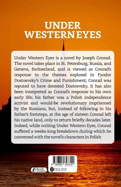 Under Western Eyes is a novel by Joseph Conrad. The novel takes place in St. Petersburg, Russia, and Geneva, Switzerland, and is viewed as Conrad's response to the themes explored in Fyodor Dostoevsky's Crime and Punishment; Conrad was reputed to have detested Dostoevsky. It has also been interpreted as Conrad's response to his own early life; his father was a Polish independence activist and would-be revolutionary imprisoned by the Russians, but, instead of following in his father's footsteps, at the age of sixteen Conrad left his native land, only to return briefly decades later.Indeed, while writing Under Western Eyes, Conrad suffered a weeks-long breakdown during which he conversed with the novel's characters in Polish