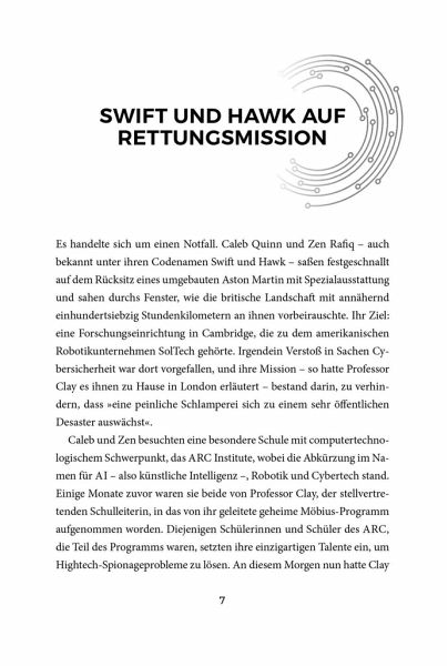 Die Cybercracks Zen und Caleb, auch bekannt als Spionage-Duo Swift & Hawk, sollen für den MI6 den Hackerangriff auf ein Robotik-Unternehmen untersuchen. Aber vor Ort warten nicht nur streikende Computer auf die Teens, sondern auch waffenfähige Roboter, die außer Kontrolle sind - und die versuchen, in die Stadt zu gelangen! Als Zen und Caleb den Virus-Code knacken, wird klar, dass der Hack Teil einer größeren Aktion ist. Der Weg zu den skrupellosen Drahtziehern führt über eine Gruppe radikaler junger Aktivist_innen. Swift & Hawk müssen sich einschleusen, um die tödlichen Pläne zu vereiteln.