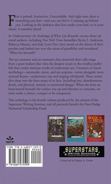Fear is primal. Instinctive. Unavoidable. And right now, there is something you fear--and you can feel it. Creeping up behind you. Lurking in the darkness that lives under your bed, or in your closet. A nameless dread. In Undercurrents: An Anthology of What Lies Beneath, twenty-three talented authors, including New York Times bestsellers Kevin J. Anderson, Rebecca Moesta, and Jody Lynn Nye, have stood on the shores of their psyches and looked out over the ocean of possibility and wondered "What lies beneath?" The sea creatures and sea monsters that answered their calls range from a giant kraken that rules the deepest ocean to the smallest puffer fish that creates intricate works of underwater art. Creatures of classic mythology--mermaids, sirens, and sea serpents--swim alongside more unusual beasts--underwater cats and singing whirlpools. These stories dive deep into the fears many of us face, including loss, abandonment, death, and physical, mental, or emotional danger. When the fears we keep buried beneath the surface rise up and threaten to consume, we must make a choice: conquer or be conquered. This anthology is the fourth volume produced by the alumni of the Superstars Writing Seminar, and all royalties benefit the Don Hodge Memorial Scholarship Fund.